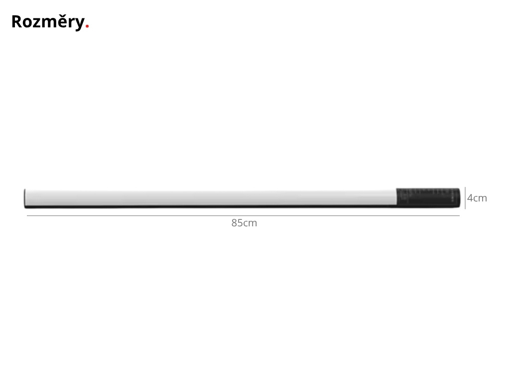 Vstavaná batéria s kapacitou 2500mAh vydrží svietiť až 1 hodinu na plný biely výkon alebo až 3 hodiny pri RGB efektoch. Nabíjanie prebieha cez USB-C. Na spodnej strane sa nachádza štandardný 1/4” závit, vďaka ktorému tyč jednoducho pripevníte na statív, gimbal alebo držiak.