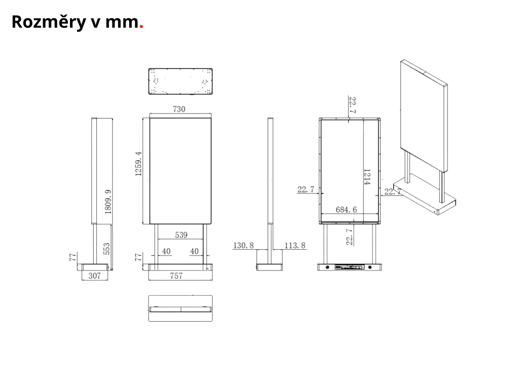 Každý projekt je jedinečný, preto ponúkame aj úpravy na mieru – od farebných detailov rámu až po celkové prispôsobenie dizajnu. Moderná konštrukcia s elegantnou textúrou zapadne do akéhokoľvek priestoru. Tento displej nie je len obrazovkou, ale investíciou do modernej a prestížnej prezentácie vašej značky.
