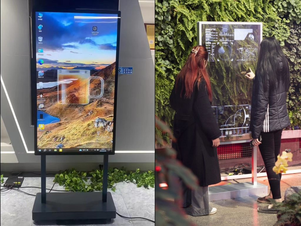Súčasťou zariadenia je výkonný PC modul s možnosťou Android alebo Windows. Vďaka tomu displej bez problémov zvládne aplikácie, interaktívny softvér aj virtuálnych asistentov. V praxi tak môže fungovať ako digitálna recepcia, informačný panel alebo interaktívny prvok v showroome.