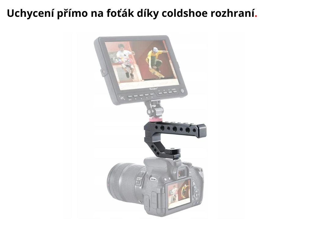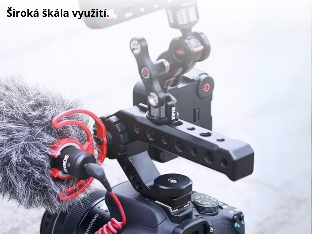 Držiak je veľmi univerzálny, pevný a vhodný pre fotoaparát. Pomocou mnohých závitov jednoducho pripevníte rôzne foto príslušenstva, ako je svetlo, mikrofón, náhľadový monitor apod.