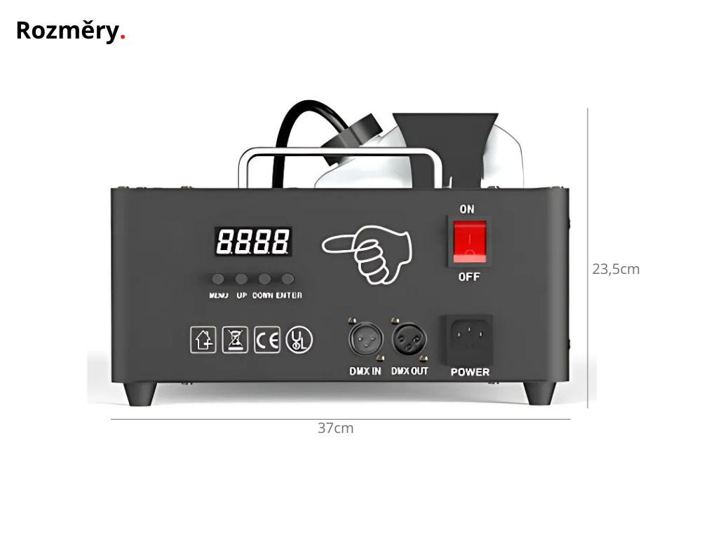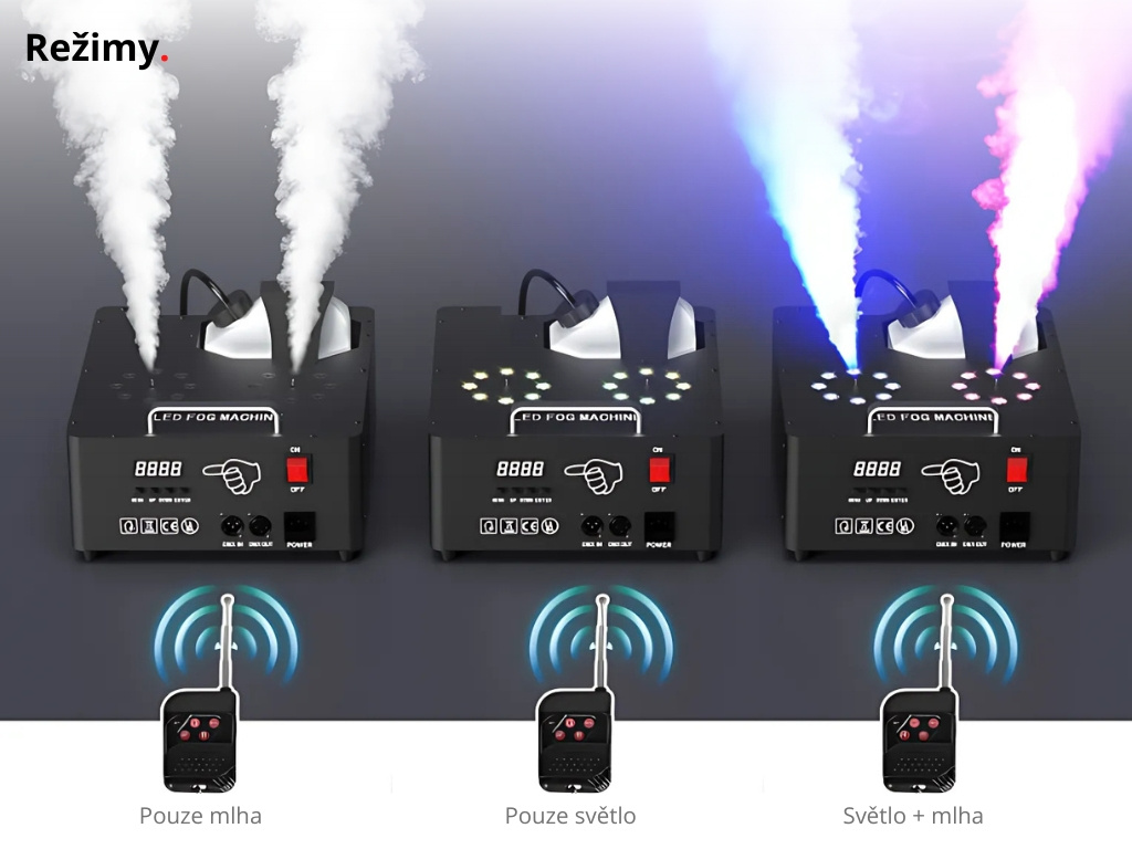 - Vertikálny výstrel a možnosť smerovania poskytujú plnú kontrolu nad tým, kam hmla smeruje. Vďaka tomu nejde o náhodný dymový efekt, ale o presne riadený scénický prvok.