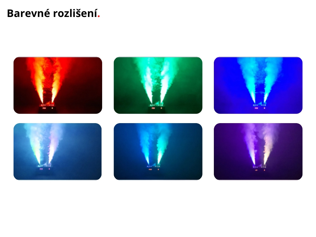Smerovateľný výstrel umožňuje pracovať s efektom kreatívne a presne podľa scenára akcie. Farebné svetlo sa plynulo prelína s hmlou, reaguje na rytmus hudby a prirodzene zapadá do svetelnej show. Výsledkom je efekt, ktorý nepôsobí rušivo, ale naopak posilňuje emóciu a energiu celého priestoru.