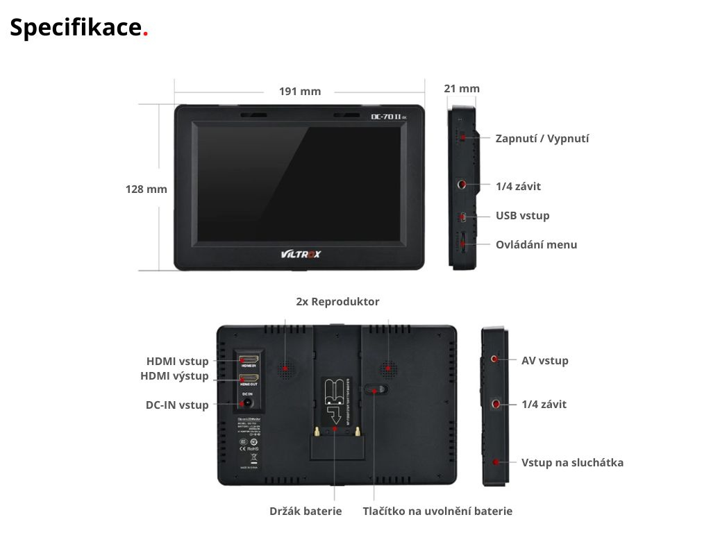Viltrox DC-70 II LCD Náhľadový Monitor 7” DSLR + Batéria