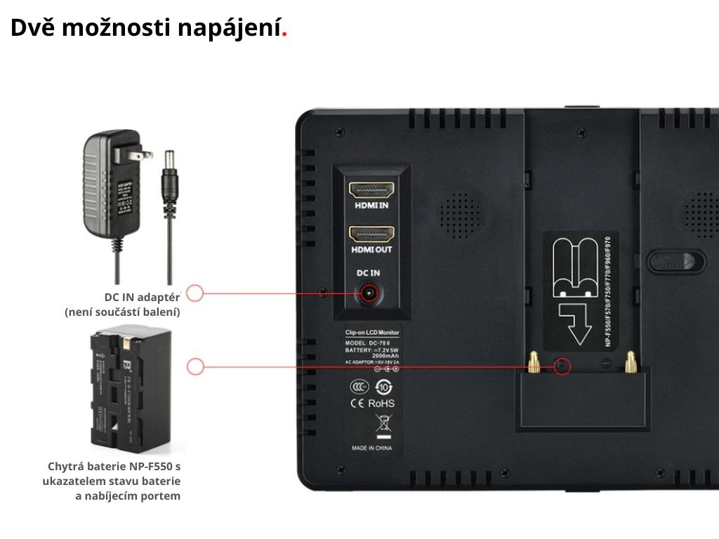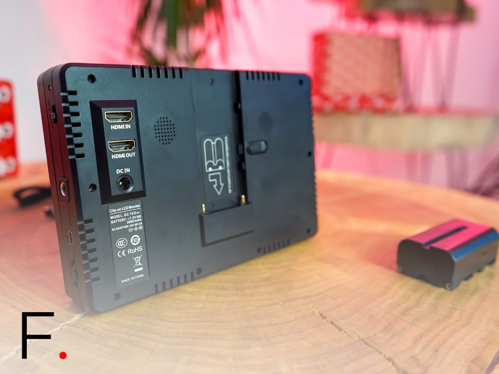 Náhľadový monitor veľkosti 7” má IPS LCD obrazovku a rozlíšenie HD 1024×600. Je vhodný predovšetkým na natáčanie videí, kedy uvidíte obraz natáčanej snímky vo väčšom rozlíšení a budete mať pod dohľadom všetky detaily. Veľkou výhodou je múdra batéria NP-F550, ktorá je súčasťou balenia a má v sebe zabudovaný ukazovateľ stavu batérie a USB-C port pre napájanie. Monitor je extrémne ľahký, váži iba 590g (s batériou) a je ultra tenký, je tak skvelý na cesty.