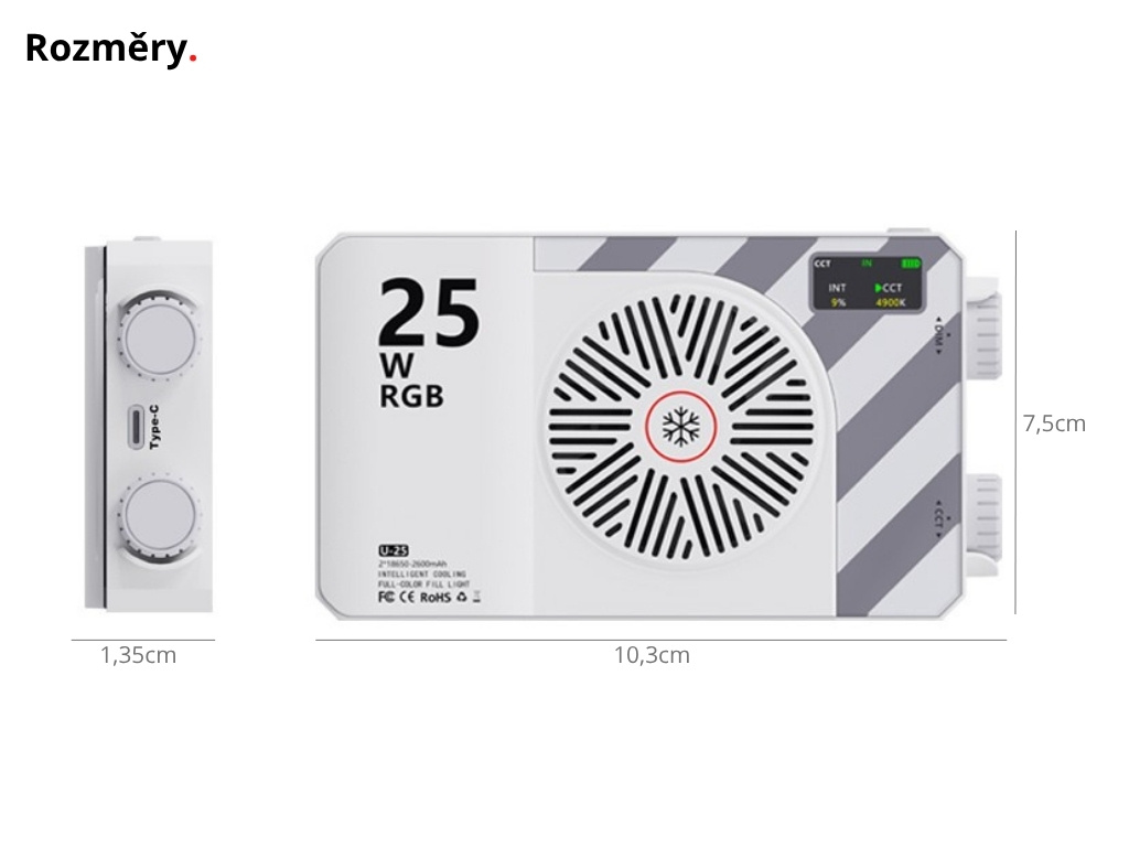 Ponúka širokú škálu farebných teplôt od teplej po studenú bielu a plnohodnotný RGB režim pre kreatívnu prácu s farbami. Svetlo si tak ľahko doladíte podľa nálady, scény alebo štýlu natáčania. Súčasťou balenia je aj kryt, ktorý zjemní svetlo na tvár alebo produkt.