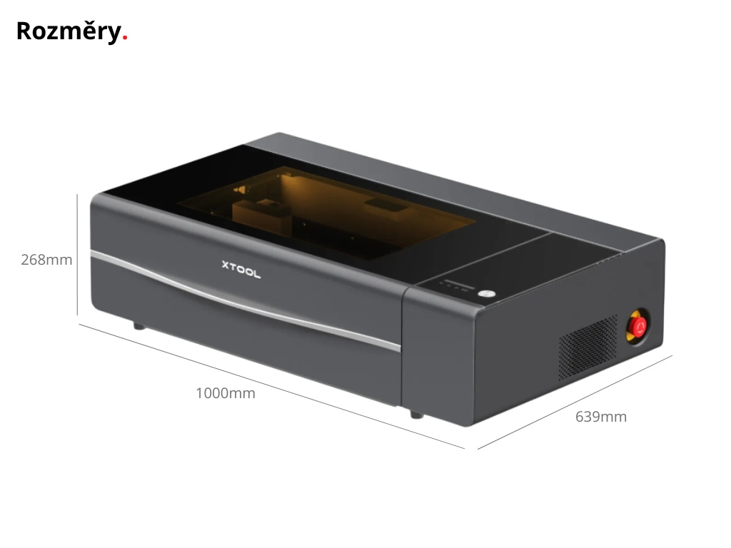 Nechýbajú ani bezpečnostné funkcie ako detekcia otvoreného krytu, dymu alebo automatické vypnutie. Intuitívne ovládanie pomocou softvéru xTool Creative Space uľahčuje nastavenie parametrov a prípravu projektov.