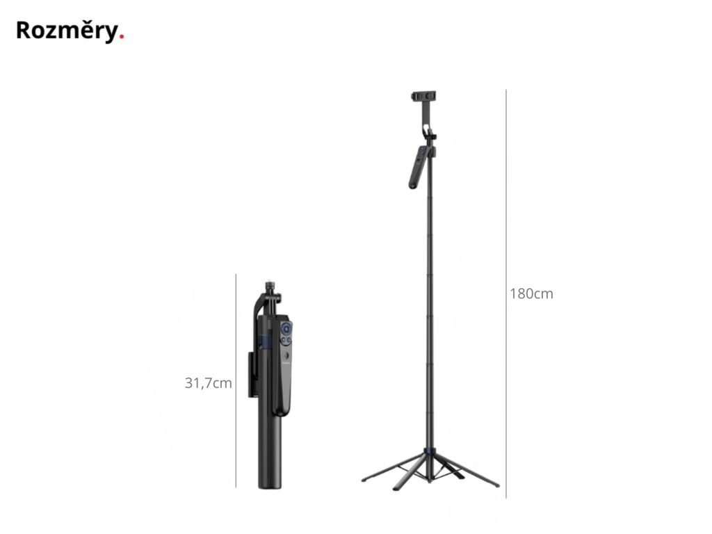 Má rozkládací konstrukci, takže si ho nastavíš přesně podle potřeby – ať už točíš akci nebo klidný rozhovor. Přesné snímání obličeje se postará o to, že budeš vždycky v záběru, i když se hýbeš nebo natáčíš v terénu.