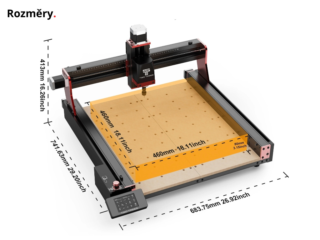 Profesionální CNC gravírka pro náročné tvůrce, kutily i malé dílny. Také nabízí extrémní stabilitu, vysokou přesnost a dostatečně velkou pracovní plochu 460×460×80mm, která je ideální jak pro detailní gravírování, tak pro větší technické výřezy.