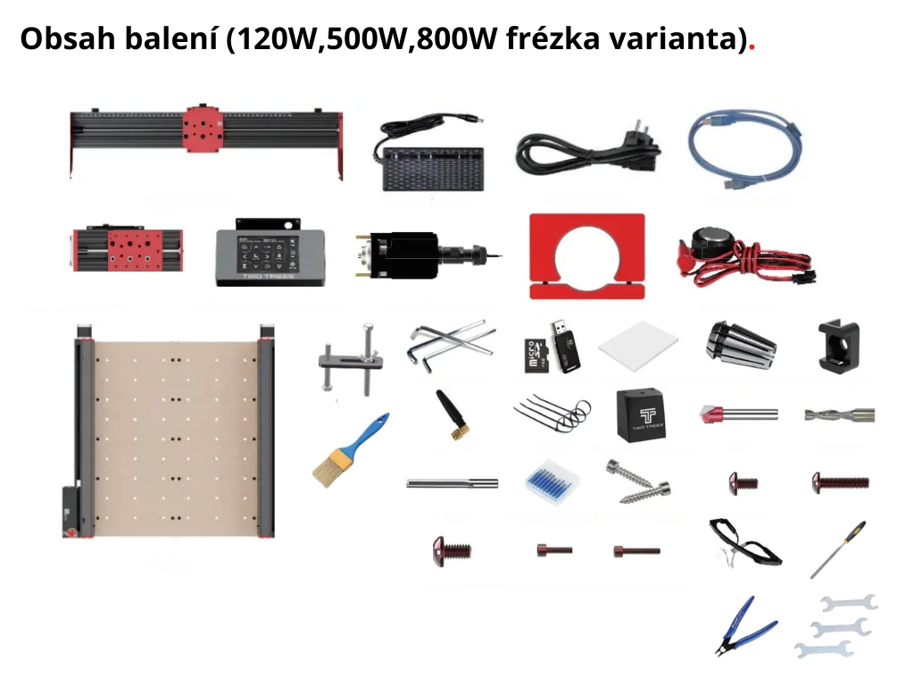 - 1x Sada 40ks fréz 3,175mm – hrubé, spirálové a kuličkové (Varianta 500W + 20W laser)
