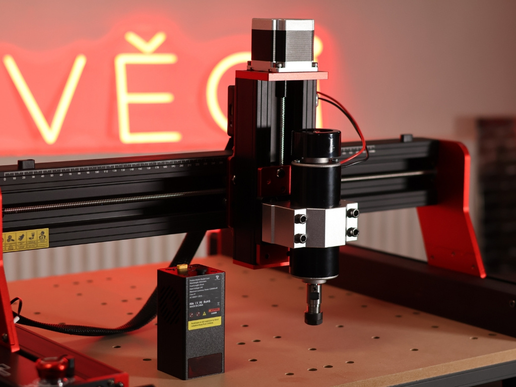 Výhodou je podpora různých nástrojů, snadná údržba a možnost kombinovat frézování s přídavným laserovým modulem – ten umožňuje gravírování jemných motivů, popisování výrobků nebo rychlou personalizaci, bez nutnosti měnit hlavu. Při použití laserového modulu doporučuji připojit vzduchovou pumpu (air assist), která zajistí čistší řezy, ostřejší detaily a minimalizuje spálené okraje.