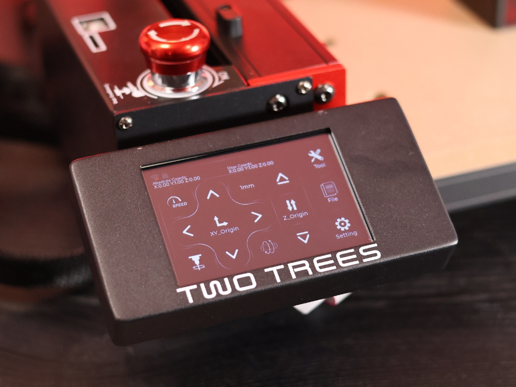 Řídicí jednotka s Wi‑Fi, USB i dotykovým displejem umožňuje pohodlné ovládání offline skrz displej nebo z počítače. Je kompatibilní s GRBL firmwarem a podporuje software jako Candle, Carveco, Artcam, Easel, FreeCAD nebo Fusion360.