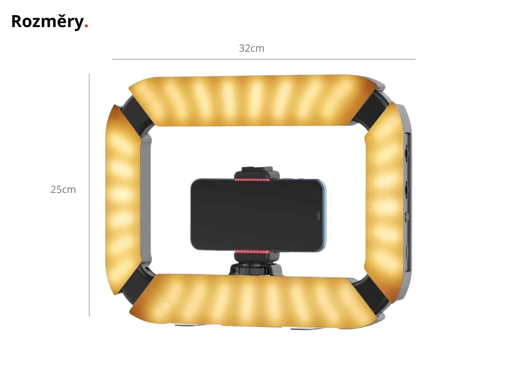 Chcete víc? Stačí jemně ubrat a životnost baterky poletí ke hvězdám! Díky USB-C portu se světlo plně nabije za pouhých 4,5 hodiny. Světelná klec má klasický 1/4 závit a držák na telefon, takže ji snadno namontujete na libovolný stativ. S třemi coldshoe sáňkami k ní můžete jednoduše připojit jakékoliv příslušenství, které potřebujete.