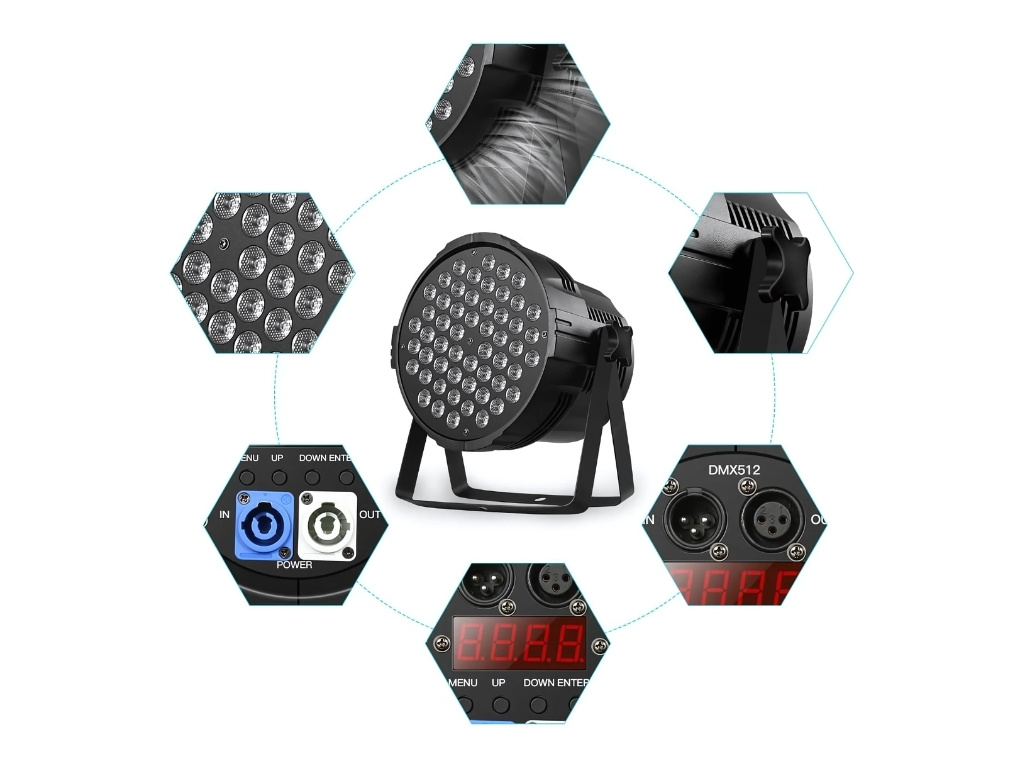 Rozjeďte párty na plné pecky s RGB discohlavou! Tahle parádní světlo s 54 LED diodami a různými barvami RGB světla rozzáří každý taneční parket i svatební sál. Nastavte si automatický režim, nechte světla reagovat na rytmus hudby, nebo si s DMX512 naprogramujte vlastní světelnou show.